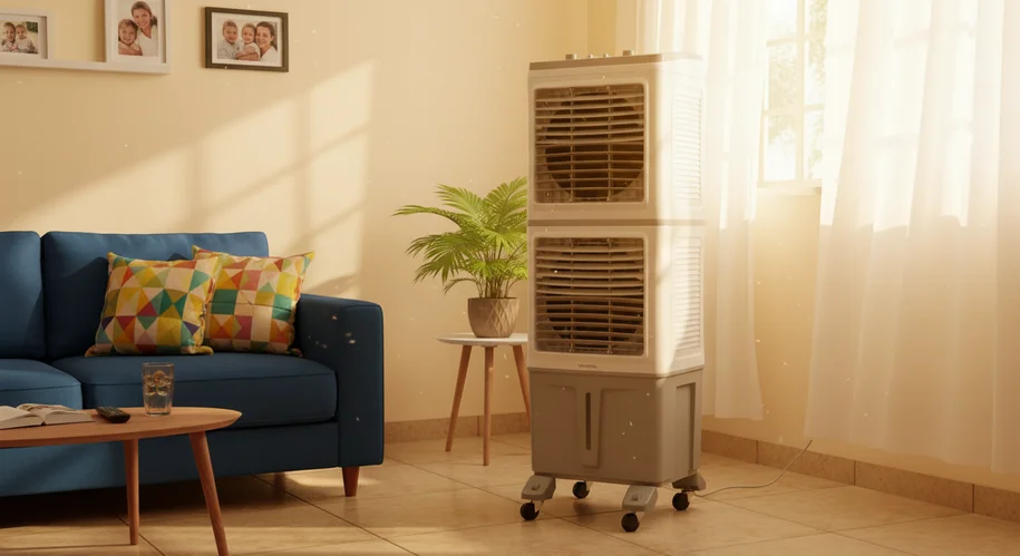 Ele não utiliza gás refrigerante e promove a circulação contínua do ar, ajudando a manter o ambiente mais fresco, confortável e saudável.