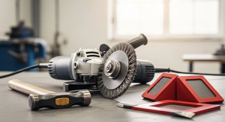 Além da máquina e dos EPIs, algumas ferramentas tornam o trabalho mais preciso e facilitam o acabamento da solda.