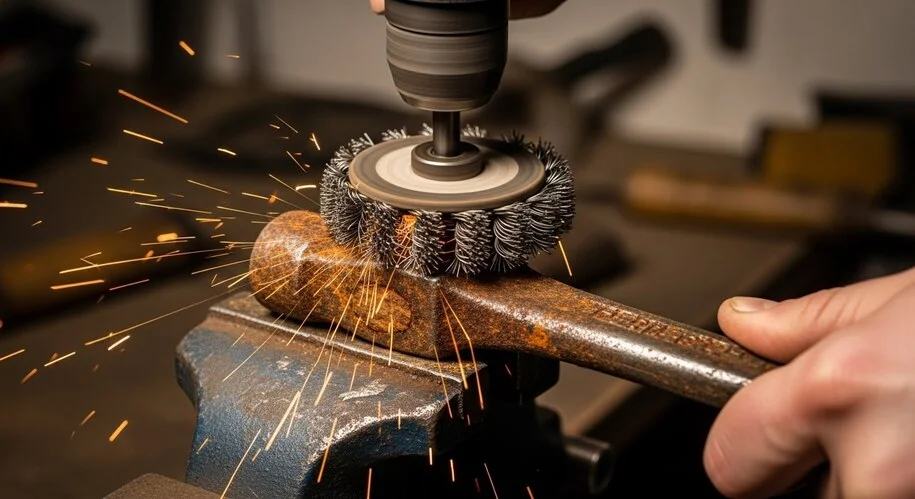 - Escovação Mecânica: Use escova de aço acoplada à furadeira ou esmerilhadeira.