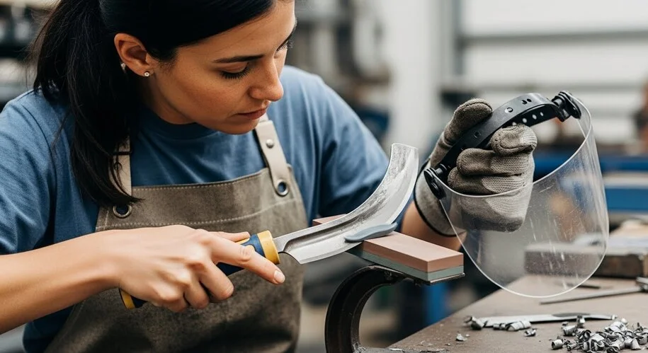 Ferramenta Certa: Pedra de amolar dupla (grossa + fina).