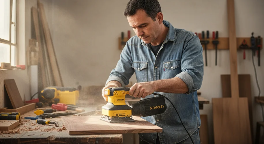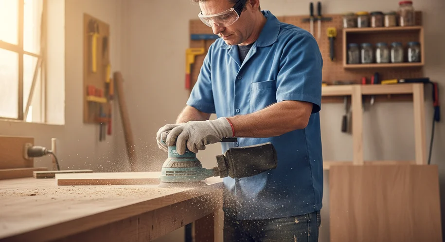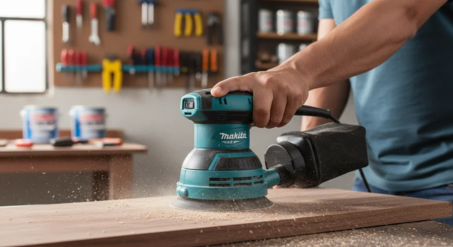 A lixadeira orbital realiza pequenos movimentos circulares de vibração. É indicada para acabamentos leves e intermediários, especialmente em madeira, MDF e superfícies planas.
