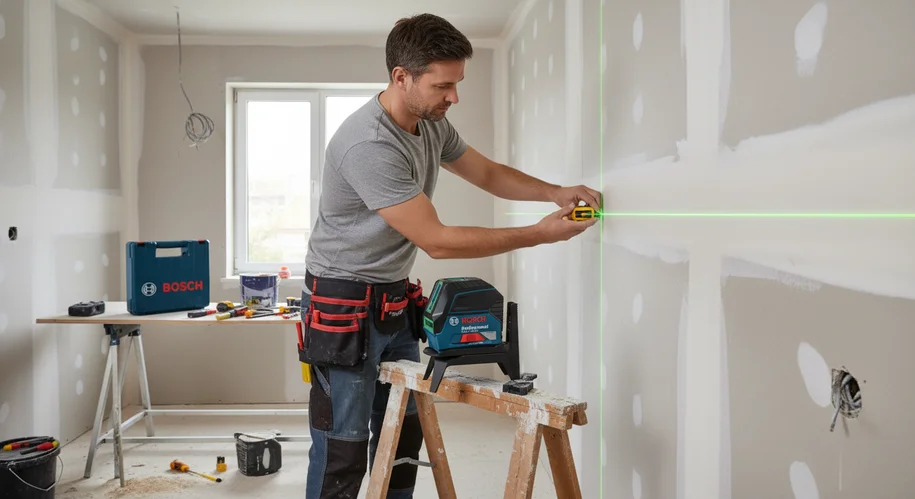 O nível a laser é extremamente útil em trabalhos que exigem alinhamento exato. Ele reduz erros humanos e acelera muito o processo de instalação.